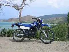 The Yamaha DT125 is a motorcycle produced by Yamaha Motor Company that was first launched in 1974 as the DT125A[1] and is still sold in some markets to this day. The model designation DT indicates that it is a 2-stroke off-road styled motorcycle, it had a raised exhaust, handlebars with cross members, universal tires, and adequate ground clearance for an off-road enduro motorcycle or trail motorcycle. The USA received the last DT125H in 1981.