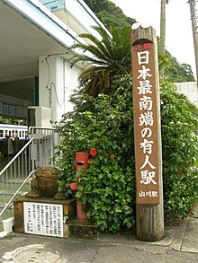 The post says the southernmost (conventional) manned railway station in Japan.