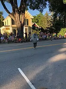 The Yarmouth Clam Festival is an annual three-day event which takes place in Yarmouth, Maine, starting on the third Friday every July. Established in 1965 as a successor to the town's late-August Old Home Week (itself started in 1911), it is hosted by the Yarmouth Chamber of Commerce, with the aim of raising money for approximately thirty local non-profit organizations, churches, and school groups. The event draws visitors from all over the country.[1] As a result, Yarmouth, a town with a population of around 9,000, accommodates approximately 120,000 people over the course of the weekend.[2] A section of the former population have made it a tradition to stake out their Friday-evening parade viewpoint with a chair several weeks before the event — even as early as May,[3] though this may be in an ironic fashion.