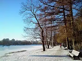 Yelagin Island (Russian: Елагин остров) is a park island at the mouth of the Neva River which is part of St. Petersburg, Russia. Yelagin Island is home to the Yelagin Palace but has a few other buildings as well. A former suburban estate of 18 century Russian nobles and later of a dowager Empress Maria, widow of Paul I of Russia, it has been serving since after the revolutions of 1917 as a city public park, officially Central Park of Culture and Rest named after Sergey Kirov, the famous Bolshevik city leader of early 1930s who supervised development of the city.