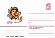 Yelena Fyodorovna Kolesova (Russian: Елена Фёдоровна Колесова; 1 August 1920 – 11 September 1942) was the commander of a partisan unit of the Soviet special forces during World War II. After dying in battle in a successful attack on a German fortress in Vydritsa, Kolesova was posthumously awarded the title Hero of the Soviet Union on 21 November 1944.[1]