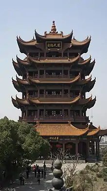 The Yuanhe Maps and Records of Prefectures and Counties, written almost 600 years after the construction of the tower, notes that after Sun Quan, founder of the kingdom of Eastern Wu, built the fort of Xiakou in 223, a tower was constructed at/on the Yellow Crane Jetty, west of Xiakou, and hence its name.[1][2]