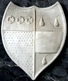 - Orchard arms as visible on other (hatched) monuments in Yeo Vale Chapel and (erroneously with a chevron in place of a fess) in Hartland Church (See:) and quartered by the Stucley Baronets of Hartland Abbey