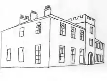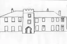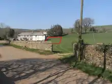 - View from west. The remaining building is the former stable-block, converted in 1962 by the Westaway family to a farmhouse,[1] now called Yeo Vale cottages.