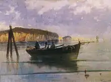 Notable works of this period include Port of Chios (Commercial Bank of Greece), The Sea Battle of Itea (Bank of Greece), Portrait of Ioannis Kartalis (Municipal Art Gallery of Volos), Dockside of Volos[15] (Katsigras), Port of Galaxidi,[16] Fishing on seashore near Port of Volos[17] and Sailing Scooner. In 1920 he produced The Sea Battle of Volos 1827, (Volos Municipal Art Gallery).