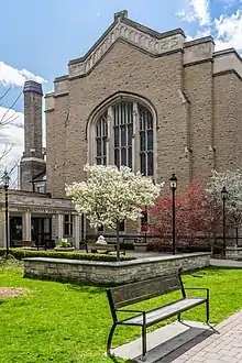 Yorkminster Park Baptist Church is the largest Baptist church in Canada and was completed in 1928 to a design by the architectural firm of George, Moorhouse and King. It is named after the 10th-century York Minster at York in northern England. The church is located in Toronto's Deer Park neighbourhood at 1585 Yonge Street, on the northeast corner of Yonge and Heath Streets.