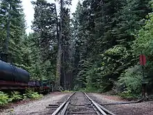 Due to the onset of the Great Depression and a lack of trees, the operation closed in 1931. But the graded right-of-way through the forest remained, enabling the Stauffer family to reconstruct a portion of the line in 1961. The current railroad utilizes locomotives, converted log disconnect cars, and other railroad equipment purchased from the West Side Lumber Company after it ceased railroad operations in 1961.[5]