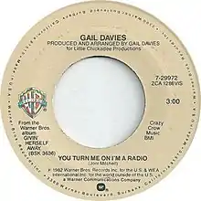 "You Turn Me On, I'm a Radio" was released as a single via Warner Bros. Records in June 1982. The song reached the seventeenth position on the Billboard Hot Country Singles chart in 1982. It became her seventh top-twenty hit on the country singles chart and her second from her fourth studio album.[13] Additionally, the single peaked at number seven on the Canadian RPM Country Singles chart, becoming her second top-ten single on that chart.[14]