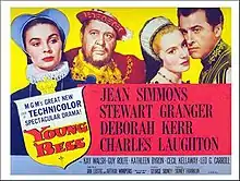 Young Bess is a 1953 Technicolor biographical film made by Metro-Goldwyn-Mayer about the early life of Elizabeth I, from her turbulent childhood to the eve of her accession to the throne of England. It stars Jean Simmons and Stewart Granger as Thomas Seymour, with Charles Laughton as Elizabeth's father, Henry VIII, a part he had played twenty years before in The Private Life of Henry VIII. The film was directed by George Sidney and produced by Sidney Franklin, from a screenplay by Jan Lustig and Arthur Wimperis based on the novel of the same title by Margaret Irwin (1944).