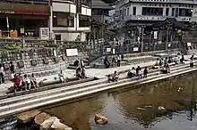 Yumura Onsen (湯村温泉) is a small village located in Shin'onsen town in Mikata District, Hyōgo Prefecture, Japan. As of 2011, Yumura township had a population of 1,206, and its surrounding area (known as Onsen) had a total population of 6,454.[1] Local legend states that the town’s hot springs (onsen) were uncovered in AD848 by the priest Jikaku Daishi. The town is said to have been inhabited since this time, and the local temple is claimed to have been built soon after the discovery of the hot springs.