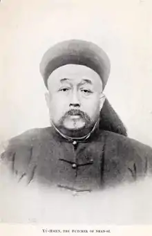 Yuxian (1842–1901) was a Manchu high official of the Qing dynasty who played an important role in the violent anti-foreign and anti-Christian Boxer Rebellion, which unfolded in northern China from the fall of 1899 to 1901. He was a local official who rose quickly from prefect of Caozhou (in unruly southwestern Shandong) to judicial commissioner and eventually governor of Shandong province. Dismissed from that post because of foreign pressure, he was soon named governor of Shanxi province. At the height of the Boxer crisis, as Allied armies invaded China in July 1900, he invited a group of 45 Christians and American missionaries to the provincial capital, Taiyuan, saying he would protect them from the Boxers. Instead, they were all killed. Foreigners, blaming Yuxian for what they called the Taiyuan Massacre, labeled him the "Butcher of Shan-hsi [Shanxi]".[1][2]