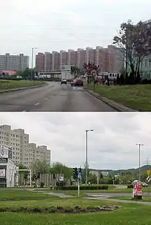 Zaspa-Młyniec is one of the administrative districts of the city of Gdańsk, Poland. The quarter with mainly high buildings has been built on the runways of the former airport of Gdańsk (Lotnisko Gdańsk-Wrzeszcz). Around 1900 there had been the villages Saspe, Mühlenhof and a training area of the Prussian hussars.