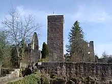 The ruins of Zavelstein Castle, a former hill castle, stand at 560 m above sea level (NN) on a hill spur above the Teinach valley on the southeastern edge of the municipality of Bad Teinach-Zavelstein in the county of Calw in the south German state of Baden-Württemberg.