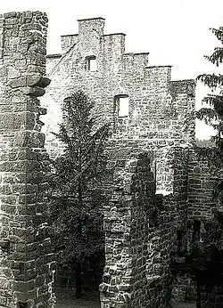 Of the former Hohenstaufen castle only the late Romanesque inner ward survives. Other recognisable remains are the two neck ditches, the gateway, the ruins of the palas, a vaulted cellar, parts of the shield wall and other wall remains of the enceinte and zwinger and the 28-metre-high bergfried.