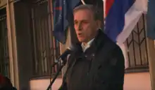 A conflict between Ponoš and Šutanovac arose to the public after Ponoš stated in an interview that reforms were stopped by the ministry, and that Šutanovac violated military's autonomy.[23][24] Tadić stated that "the defense system is stable" during an interview.[25] Tadić then decided to side with Šutanovac in this conflict, and he dismissed Ponoš on 30 December, after allegedly violating military rules.[12][24][26][27] Ponoš accepted to step down.[28] Some observers have considered this conflict to be a political move.[29] Ponoš was previously called by conservative politicians to resign due to his reforms and pro-Western views.[30][31]