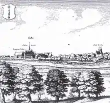 The nunnery was initially dedicated to the Blessed Virgin Mary and Saint George, but in 1409 the later dedication to the Holy Cross is documented for the first time, in a letter of the Antipope Alexander V.