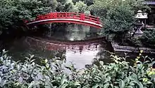 Zennyo is worshipped at the Zennyo Ryūō-sha 善女竜王社 Shinto shrine on an island in the Shinsen'en, reached by crossing the Hōsei-bashi 法成橋 "Dharma Completion Bridge".