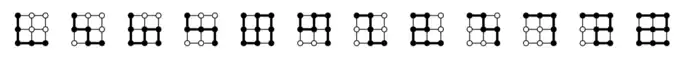 One may use ZDDs to represent simple paths in an undirected graph. For example, there are 12 ways to go from the upper left corner of a three by three grid (shown in Figure 11) to the lower right corner, without visiting any point twice.