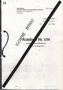 - Federal Commissioner for the Records of the State Security Service of the former German Democratic Republic. Directive No. 1/76 on the Development and Revision of Operational Procedures Richtlinie Nr. 1/76 zur Entwicklung und Bearbeitung Operativer Vorgänge (OV)