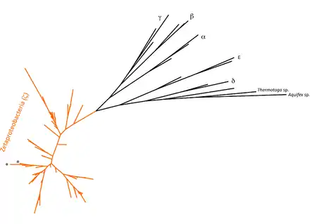 The class Zetaproteobacteria is the sixth and most recently described class of the Pseudomonadota.[1] Zetaproteobacteria can also refer to the group of organisms assigned to this class. The Zetaproteobacteria were originally represented by a single described species, Mariprofundus ferrooxydans,[2] which is an iron-oxidizing neutrophilic chemolithoautotroph originally isolated from Loihi Seamount in 1996 (post-eruption).[1][3] Molecular cloning techniques focusing on the small subunit ribosomal RNA gene have also been used to identify a more diverse majority of the Zetaproteobacteria that have as yet been unculturable.[4]