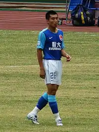 Zheng Zhi (Chinese: 郑智; pinyin: Zhèng Zhì; born 20 August 1980) is a Chinese professional footballer and manager who currently plays for, captains and manages Chinese Super League club Guangzhou F.C. After starting his career as a defender, Zheng was later moved into a central midfield role by then head coach Zhu Guanghu at Shenzhen Jianlibao and experienced immediate success there by winning the 2004 league title with the club. A move to Shandong Luneng Taishan saw a prolific goal scoring period in his career and he soon became the captain of the Chinese national team, which then led to moves to Charlton Athletic and Celtic. He moved back to China in 2010 and joined Guangzhou Evergrande, making over 300 appearances so far as captain while helping the club win all major trophies a Chinese club could compete for, including Chinese Super League for a record 8 times and AFC Champions League twice.