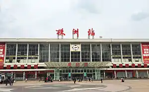 Zhangshu East railway station (Chinese: 株洲站) is a railway station in Lusong District, Zhuzhou, Hunan, China. It is located at the intersection of the Beijing–Guangzhou railway and the Shanghai–Kunming railway, and is also an intermediate stop on the Changsha–Zhuzhou–Xiangtan intercity railway.[1]