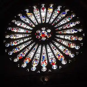 The zodiac is found in medieval stained glass as at Angers Cathedral, where the master glassmaker, André Robin, made the ornate rosettes for the North and South transepts after the fire there in 1451.[36]