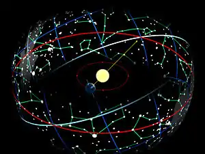 These astrological signs form a celestial coordinate system, or more specifically an ecliptic coordinate system, which takes the ecliptic as the origin of latitude and the Sun's position at vernal equinox as the origin of longitude.[4]
