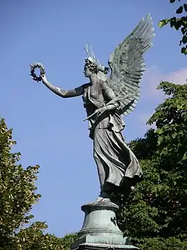 Zwei Friedenssäulen (English: Two Peace Columns) is a pair of outdoor columns surmounted by bronze statues of Victoria, the goddess of victory. They were made in 1840 by the German sculptor Christian Daniel Rauch and installed outside the Charlottenburg Palace in Berlin, Germany.